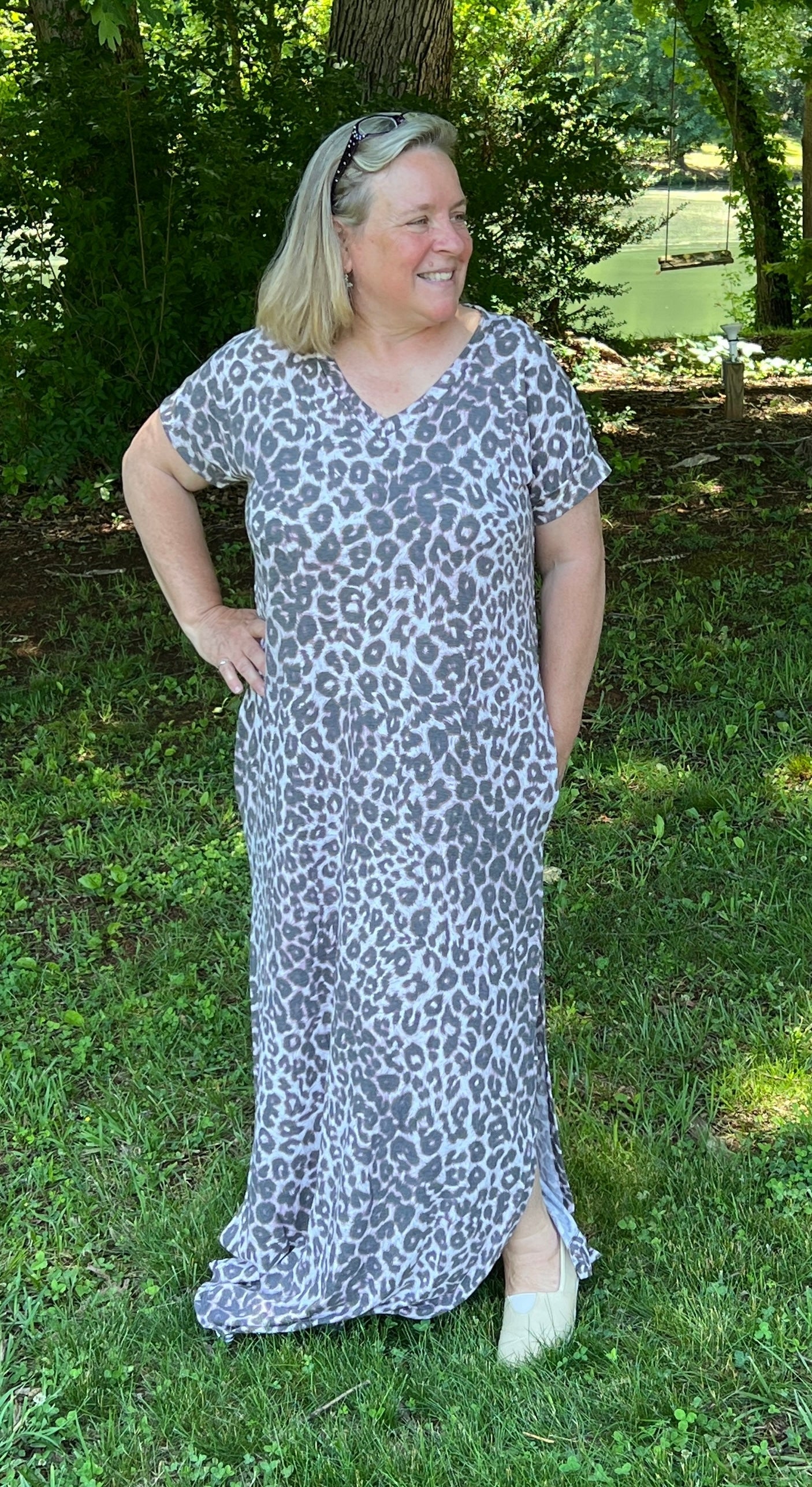 Wild Berry Leopard Print Plus Size Long Maxi Dress