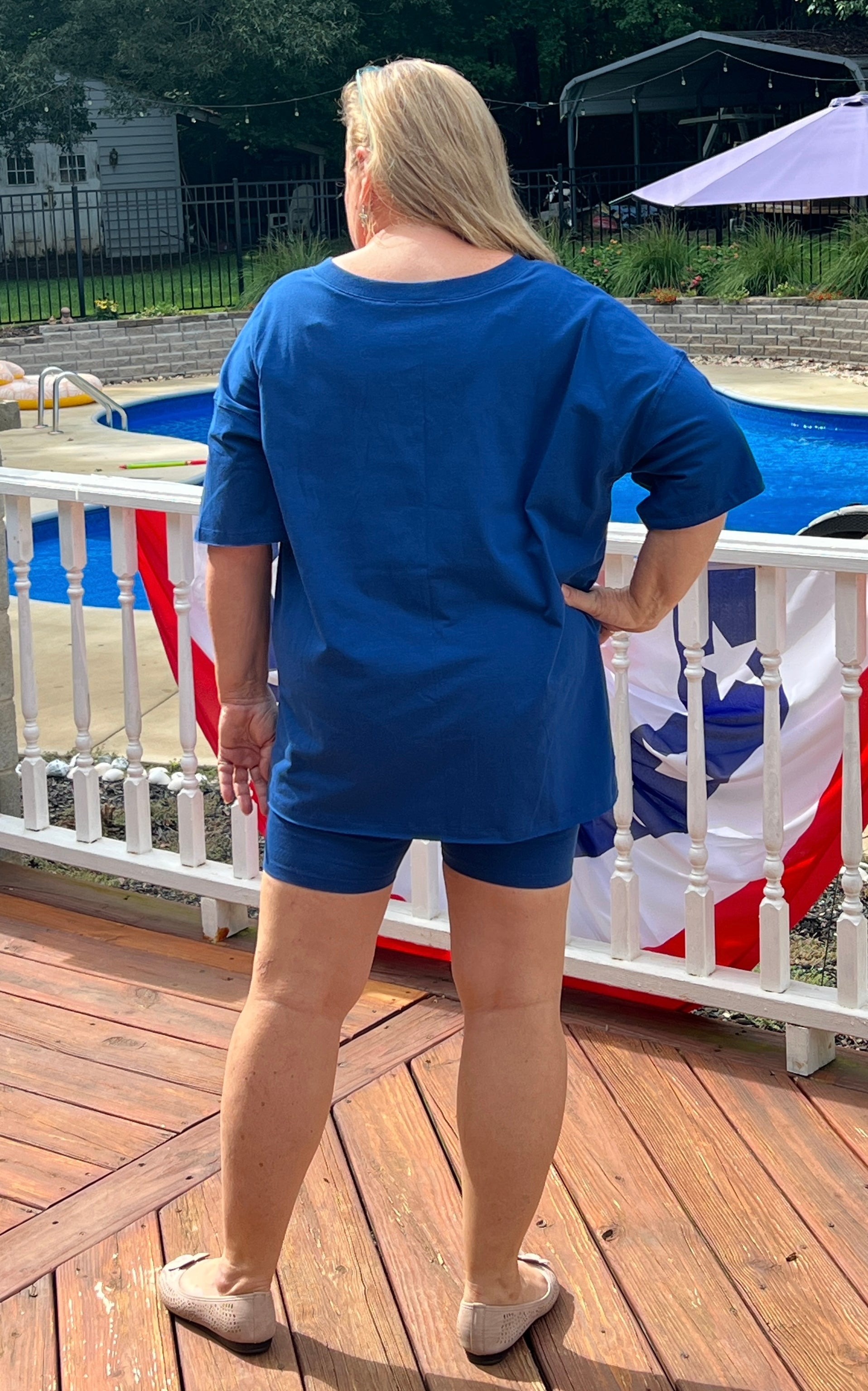 Navy and Floral All in One Plus Size Dressy Blouse Set
