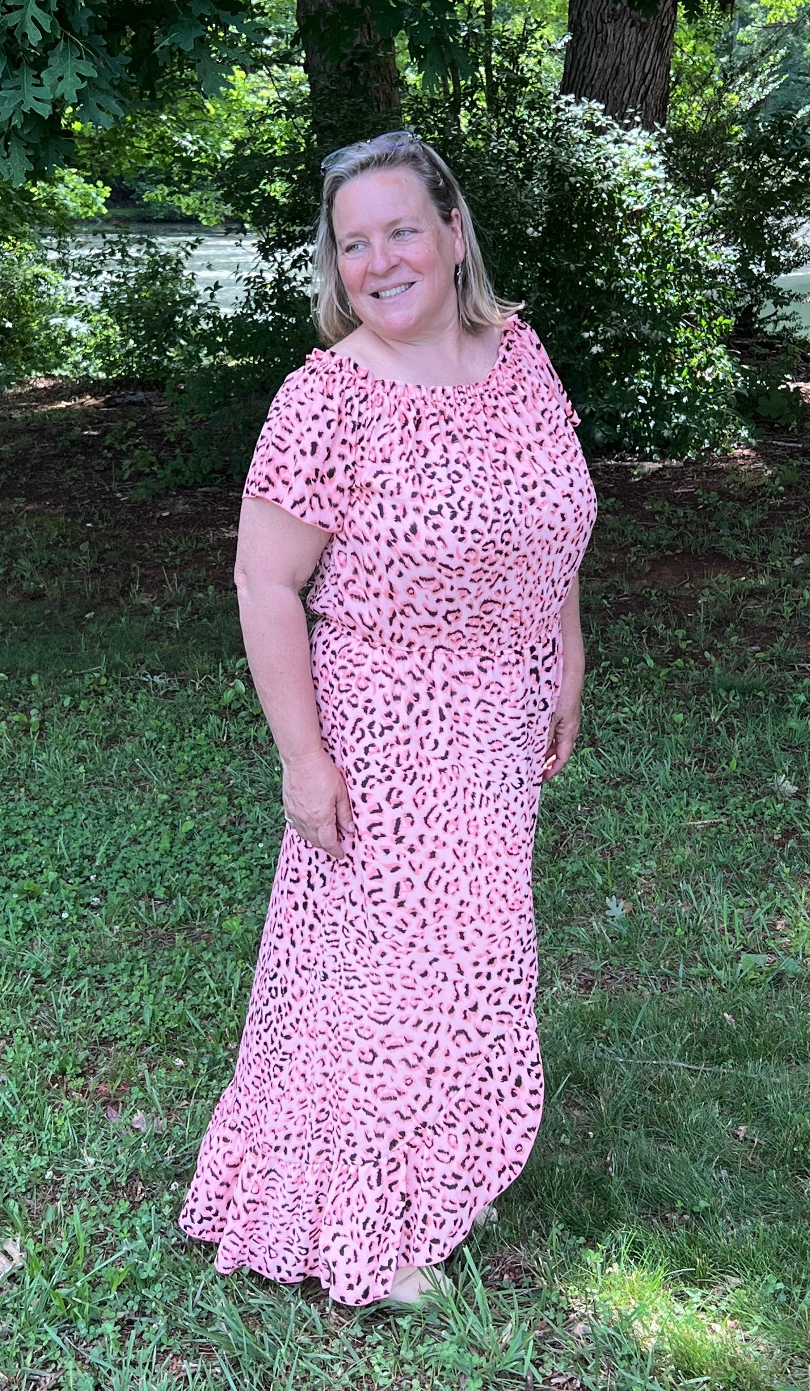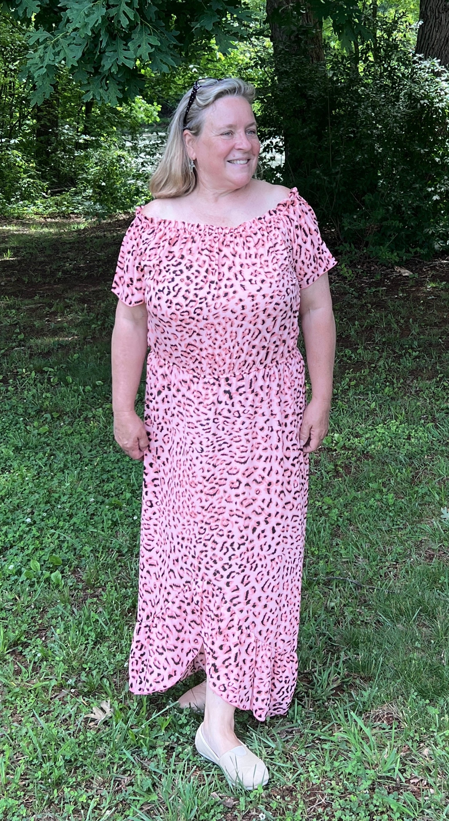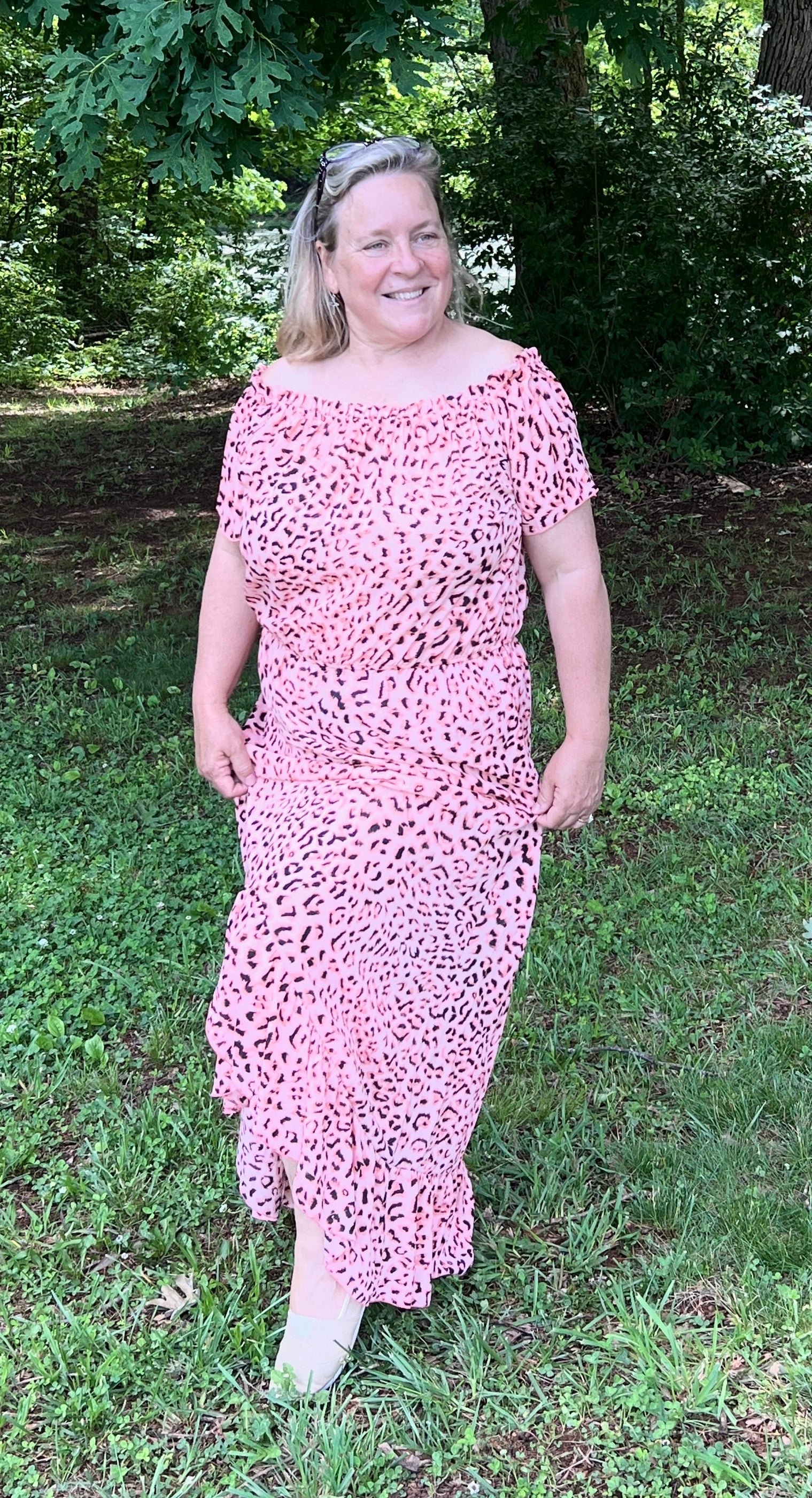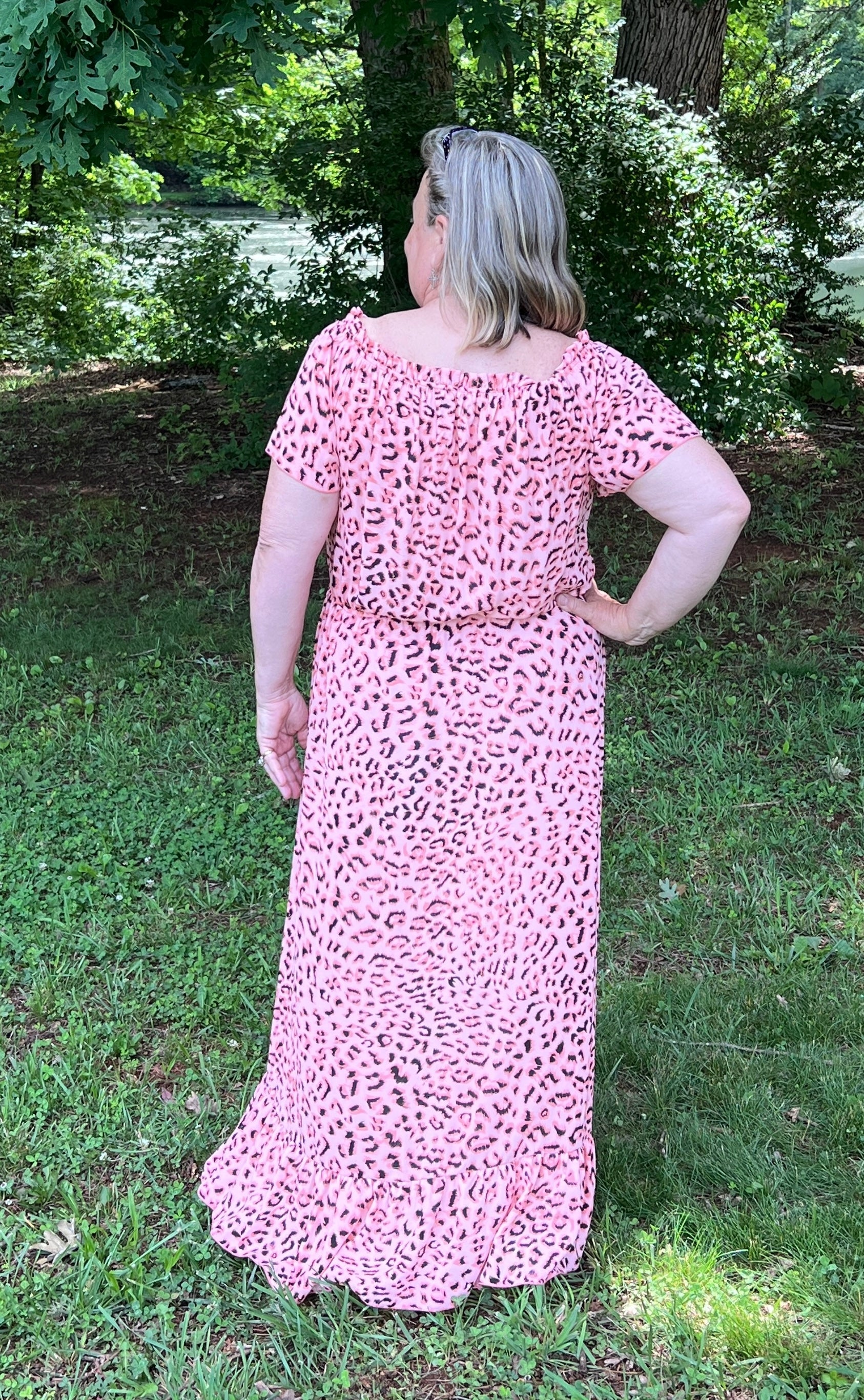 Romantic Off Shoulder Animal Print Coral Blush Maxi Dress
