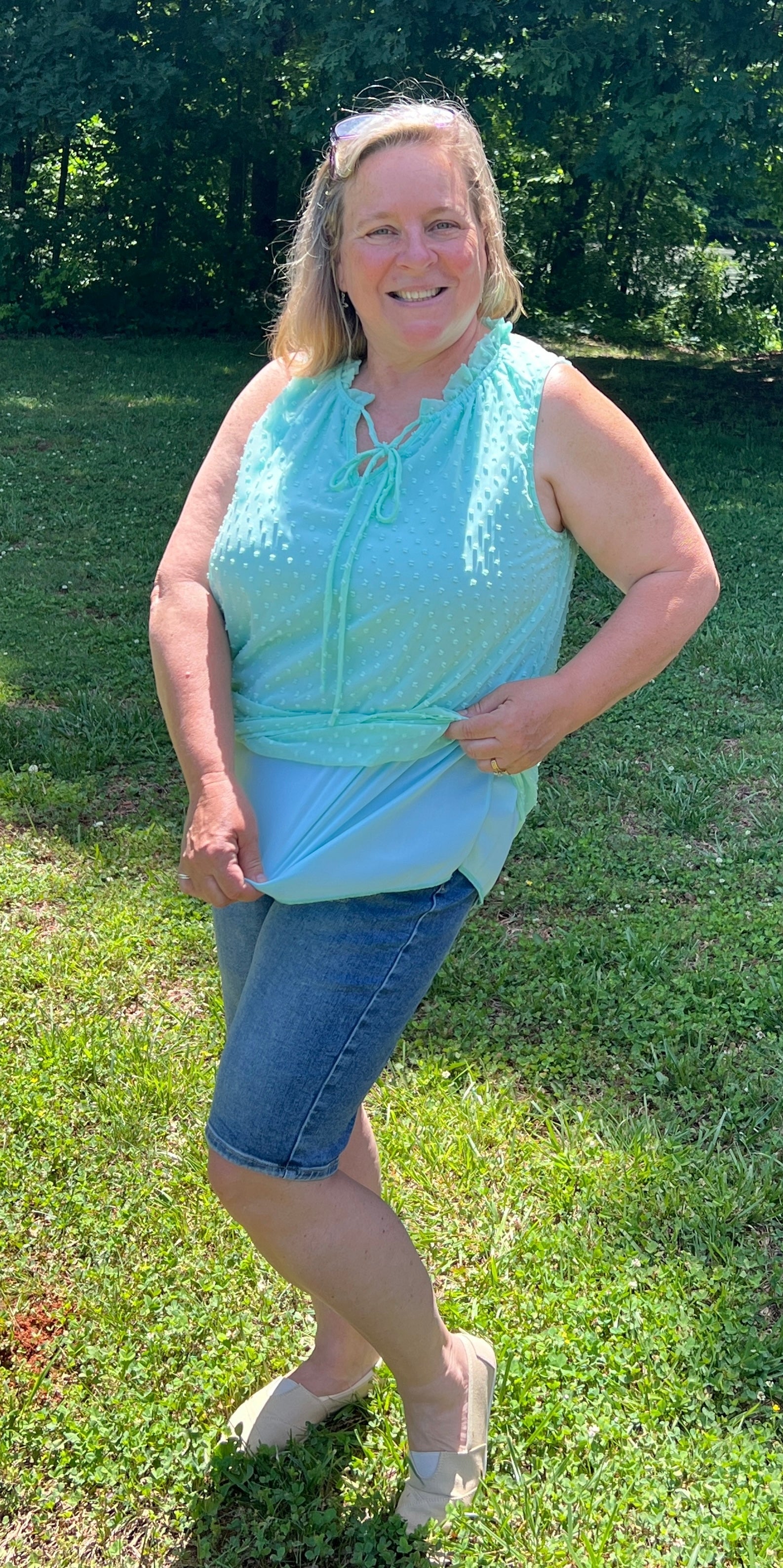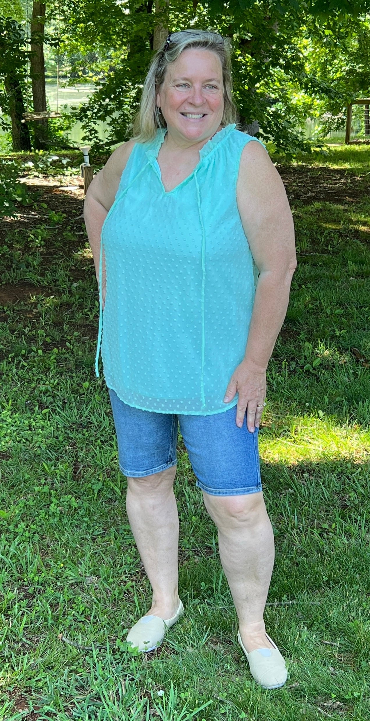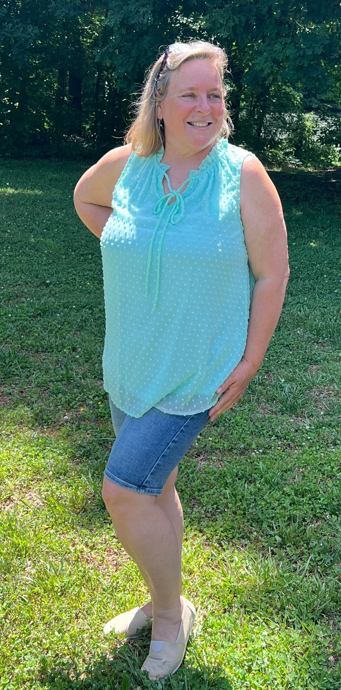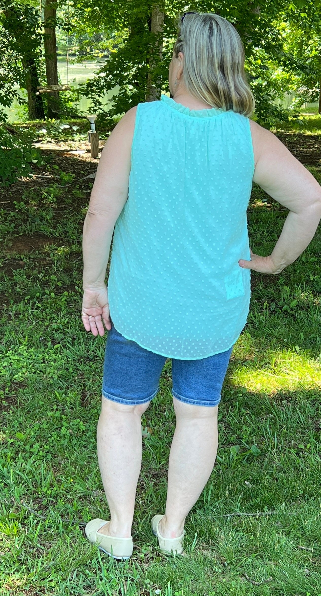 Simply Mint Swiss Dot Texture Plus Size Sleeveless Blouse