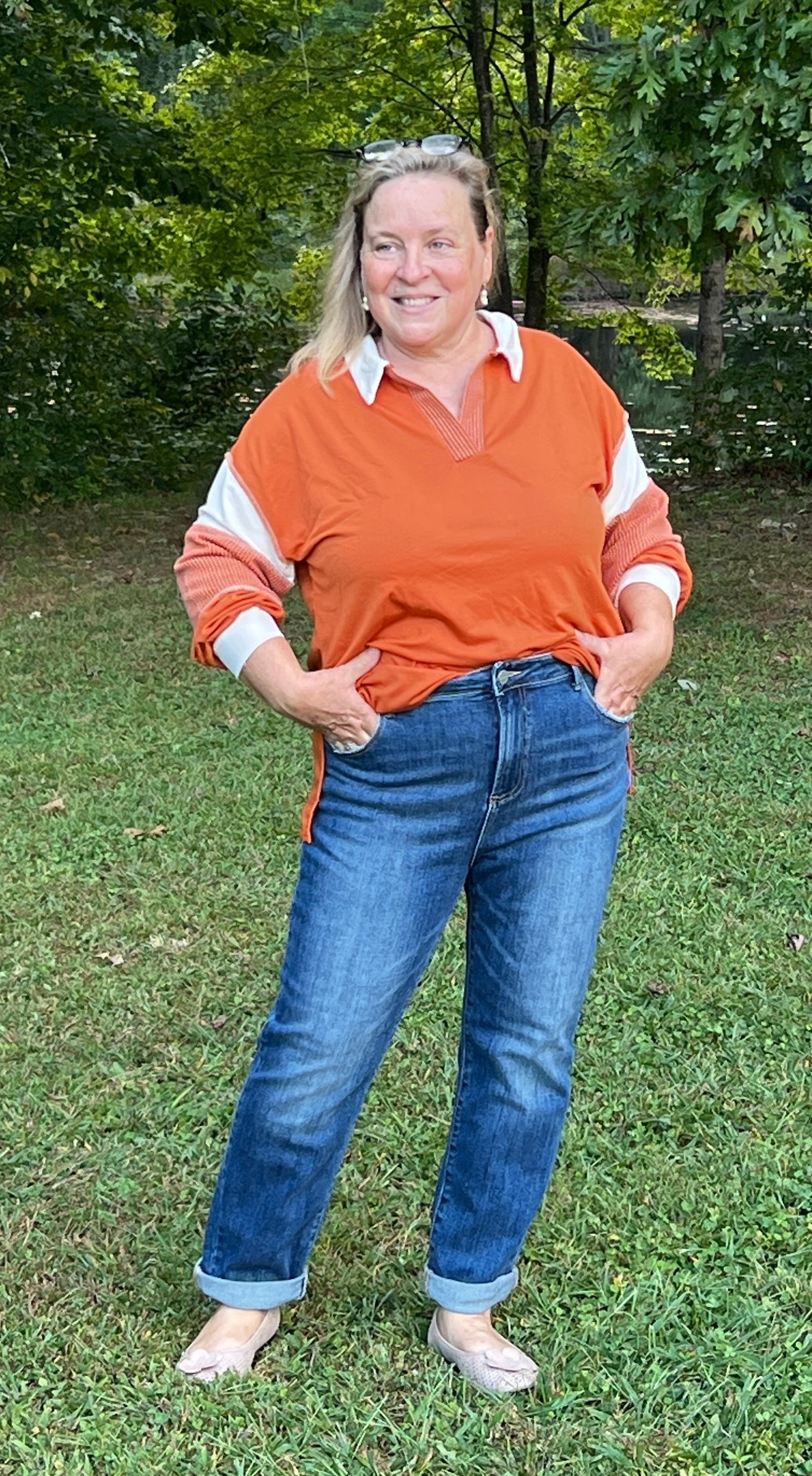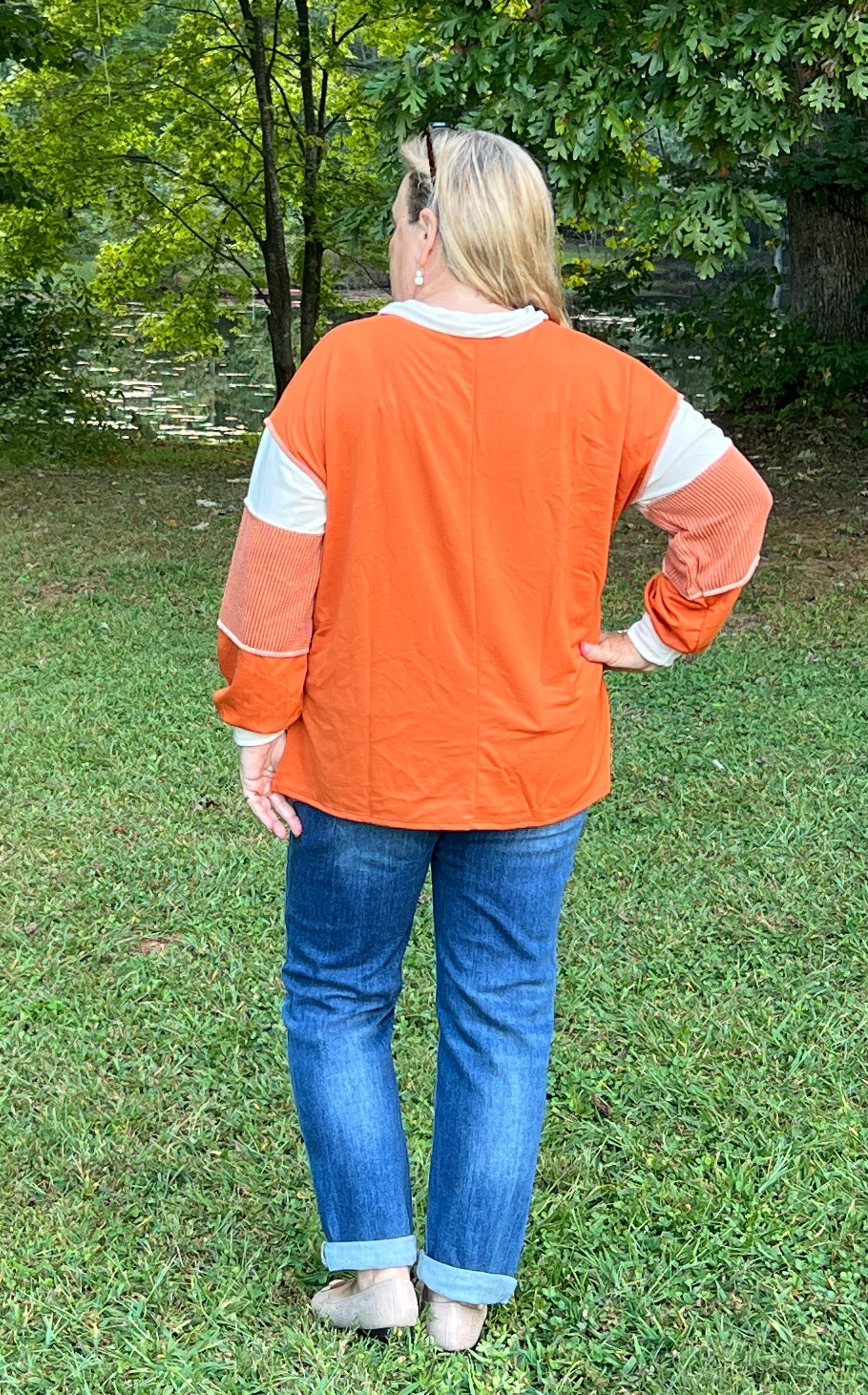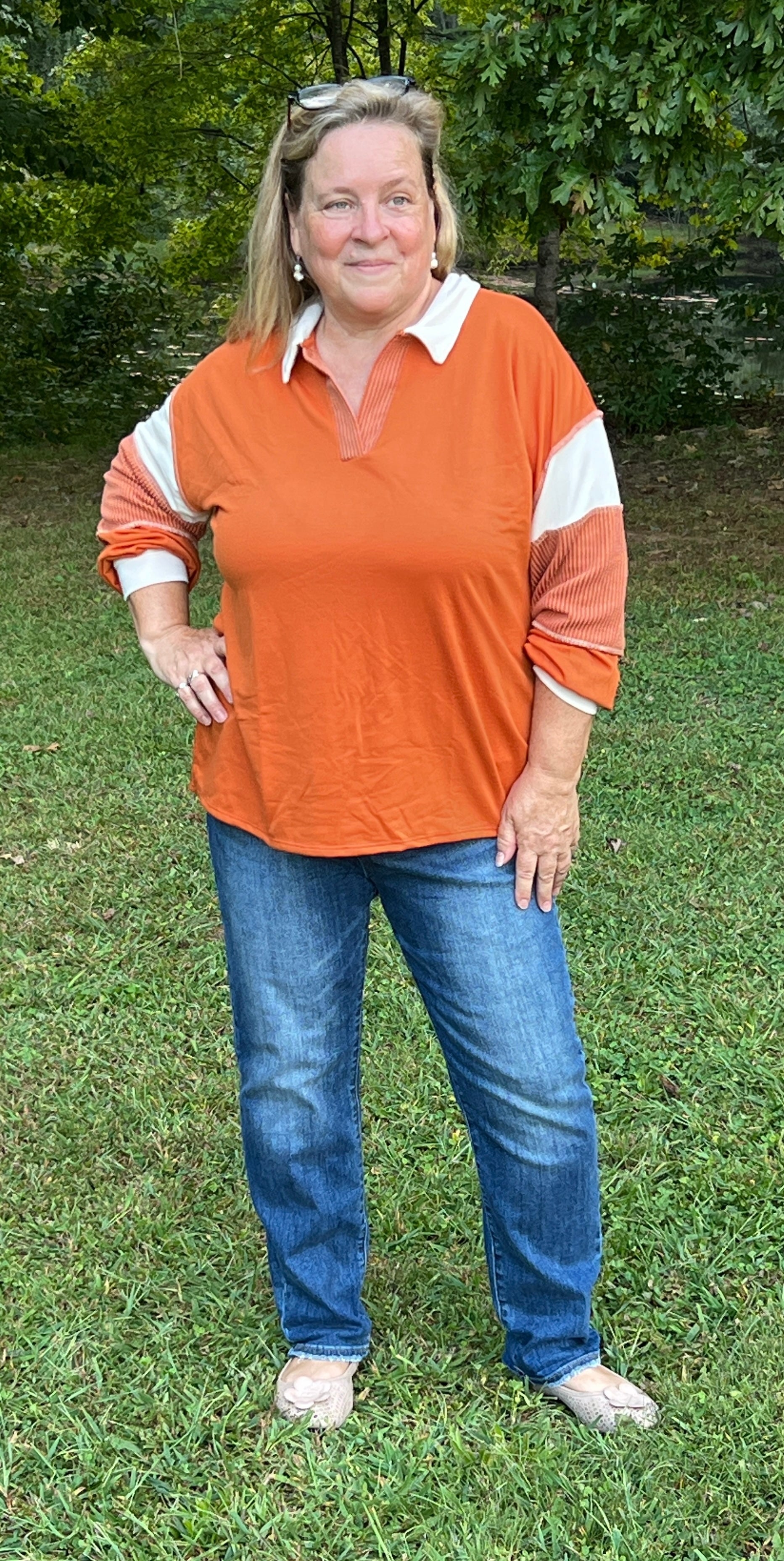 Rust Oversized Knit Pullover Top with Johnny Collar