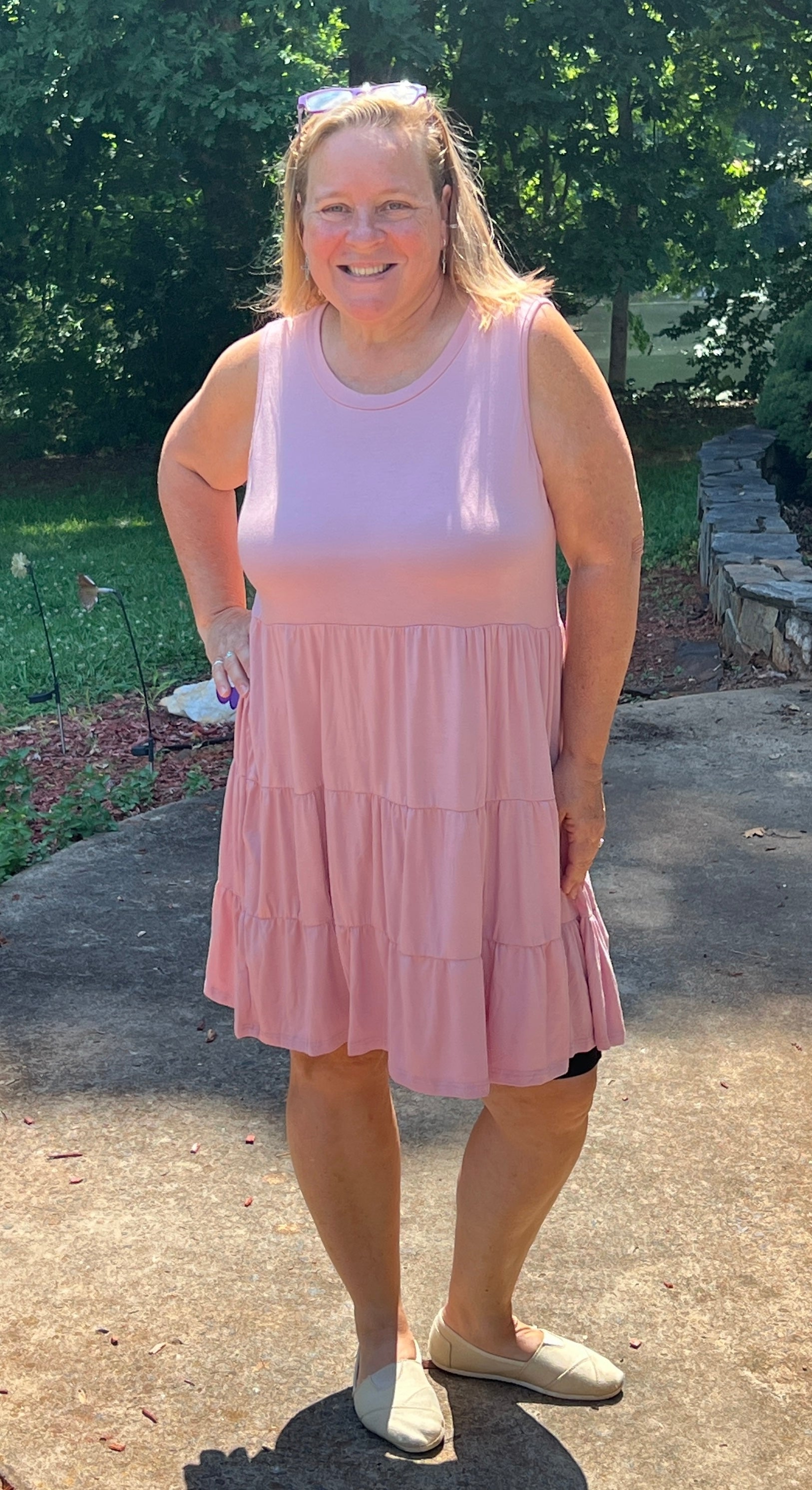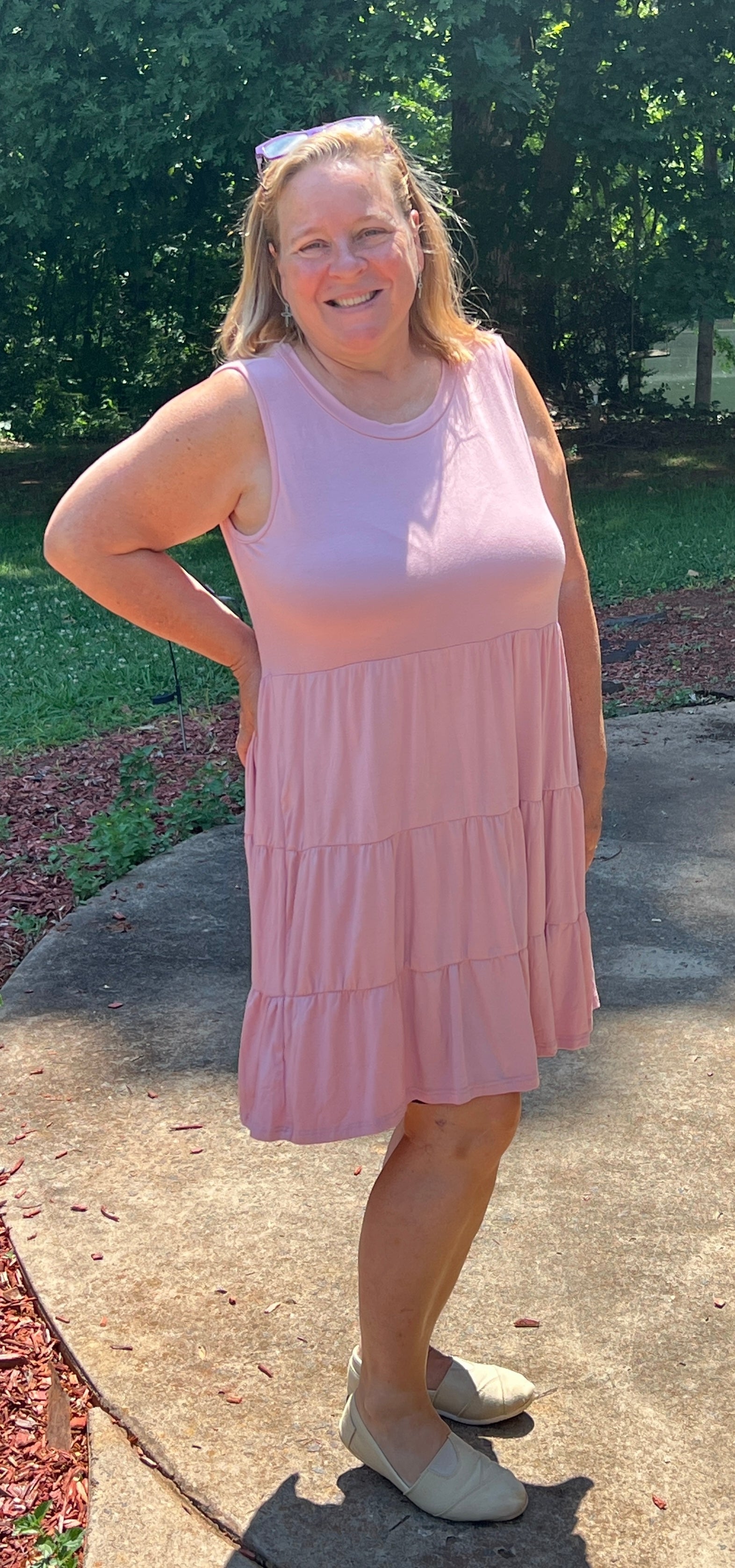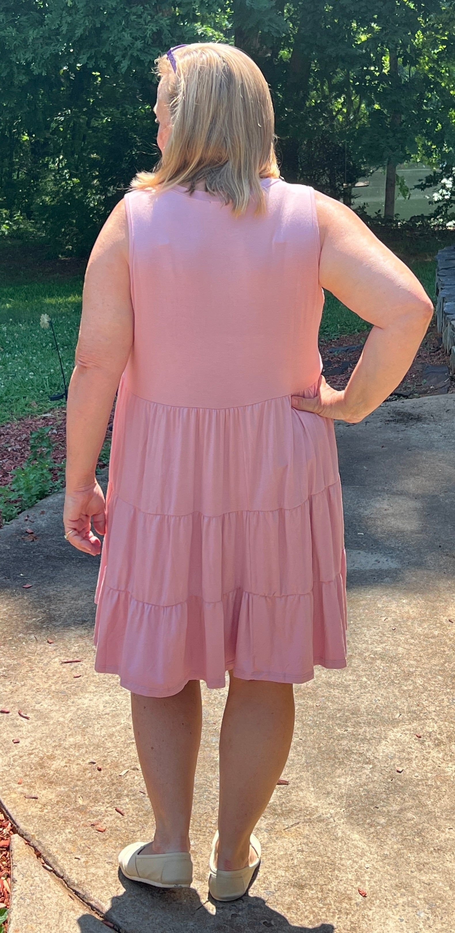 Sleeveless Tiered Plus Size Baby Doll Dress in Veiled Rose Pink