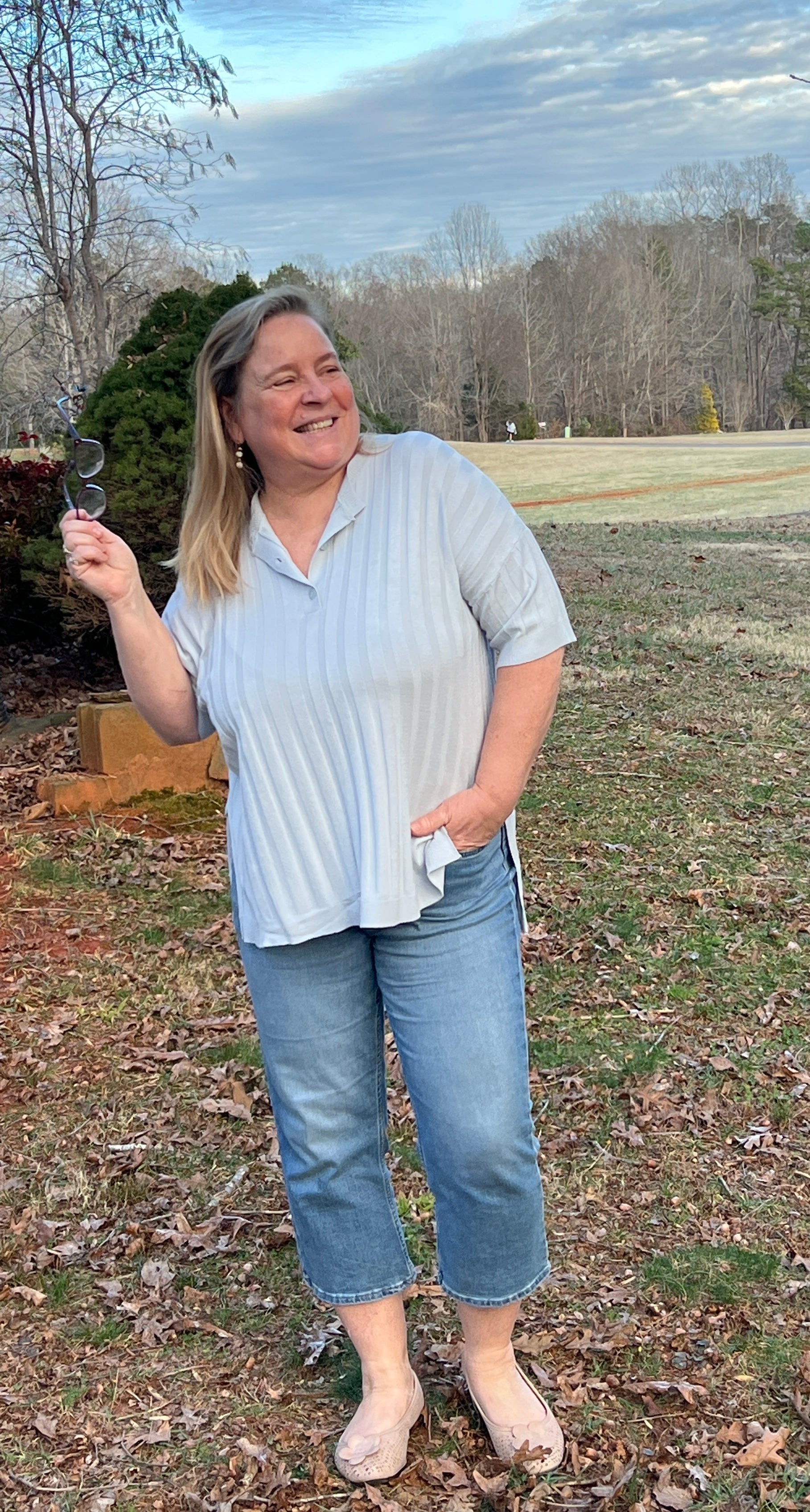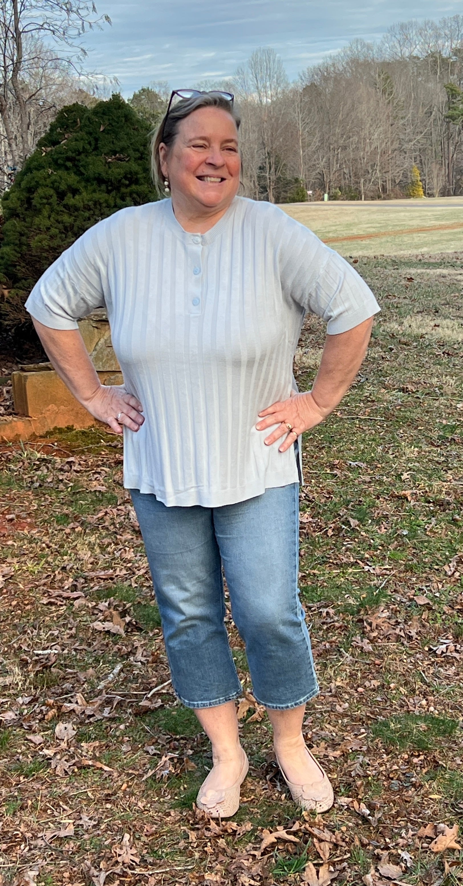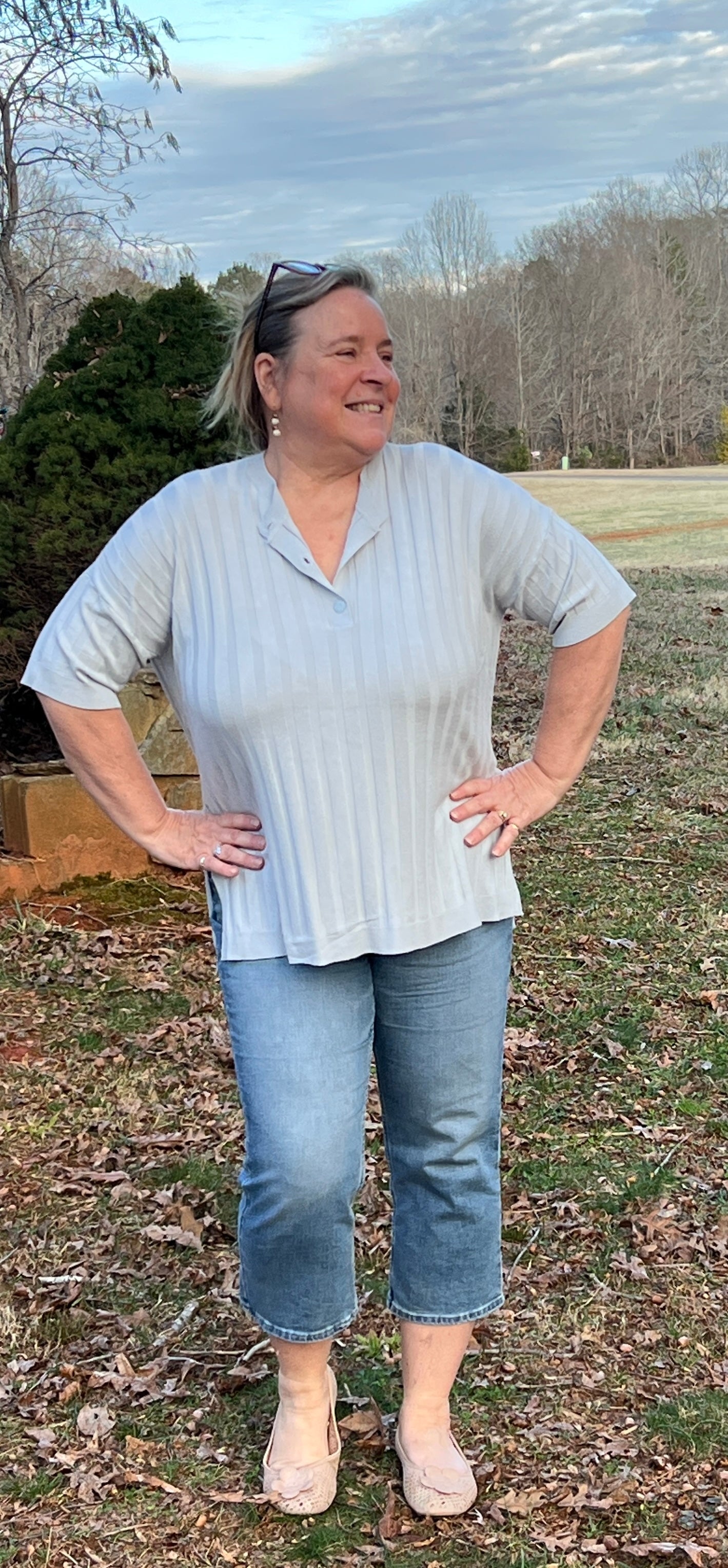 Softly structured and effortlessly refined, The Morning Sky Pullover is a soft light blue and features subtle ribbed texture, a classic three-button placket, and a flattering hi-lo hem with side vents. Designed with a slight oversize fit it offers relaxed comfort and graceful movement and this gentle blue color pairs beautifully with everything. Size down for more fitted look.
