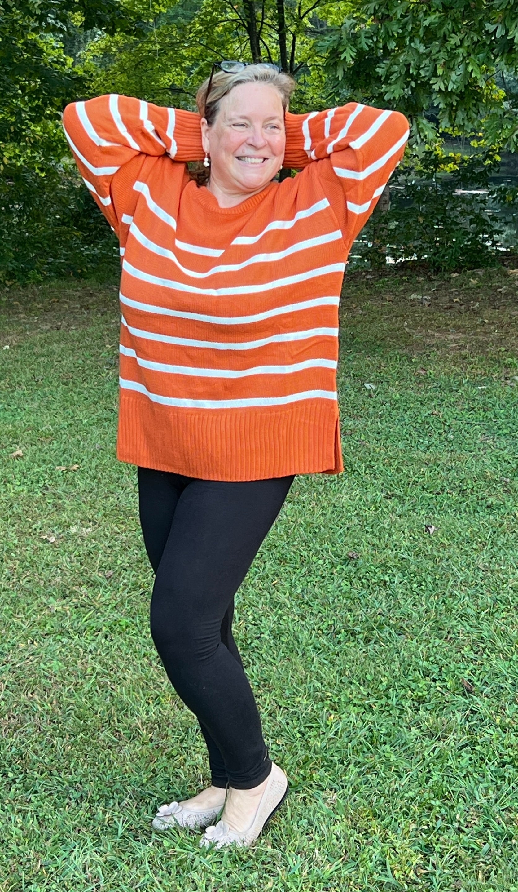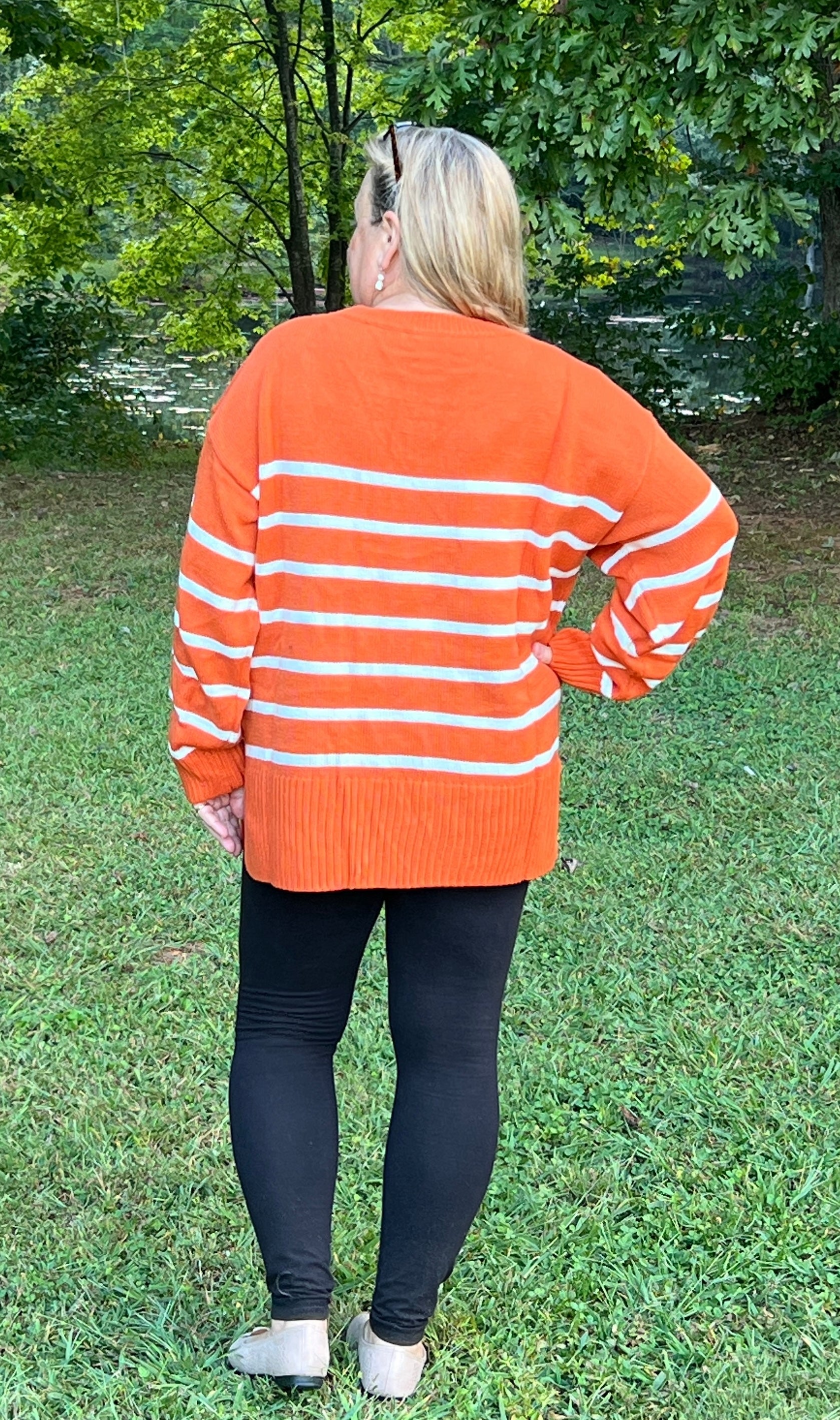 Hokie Orange and Cream Stripe Knit Plus Size Sweater