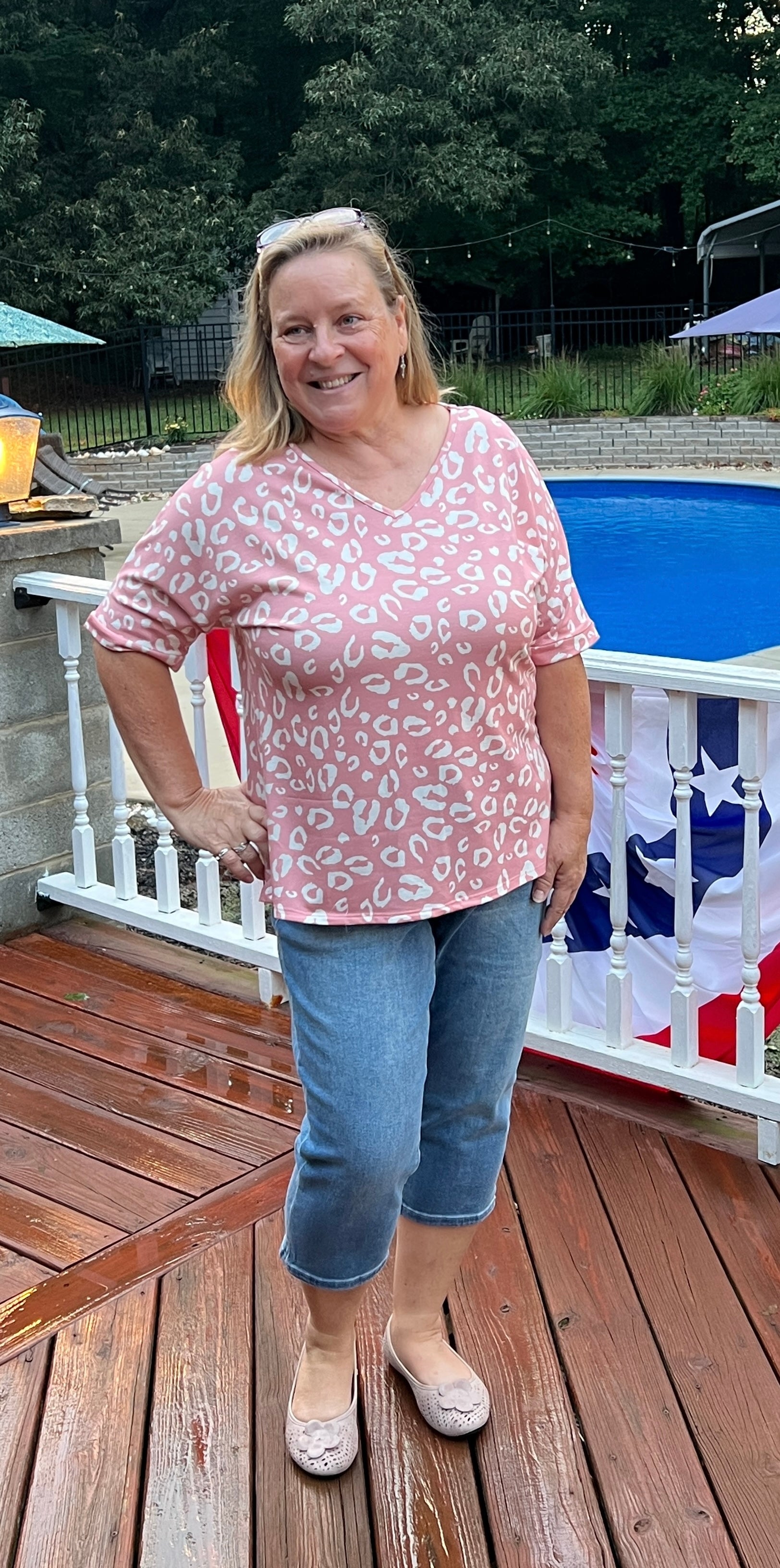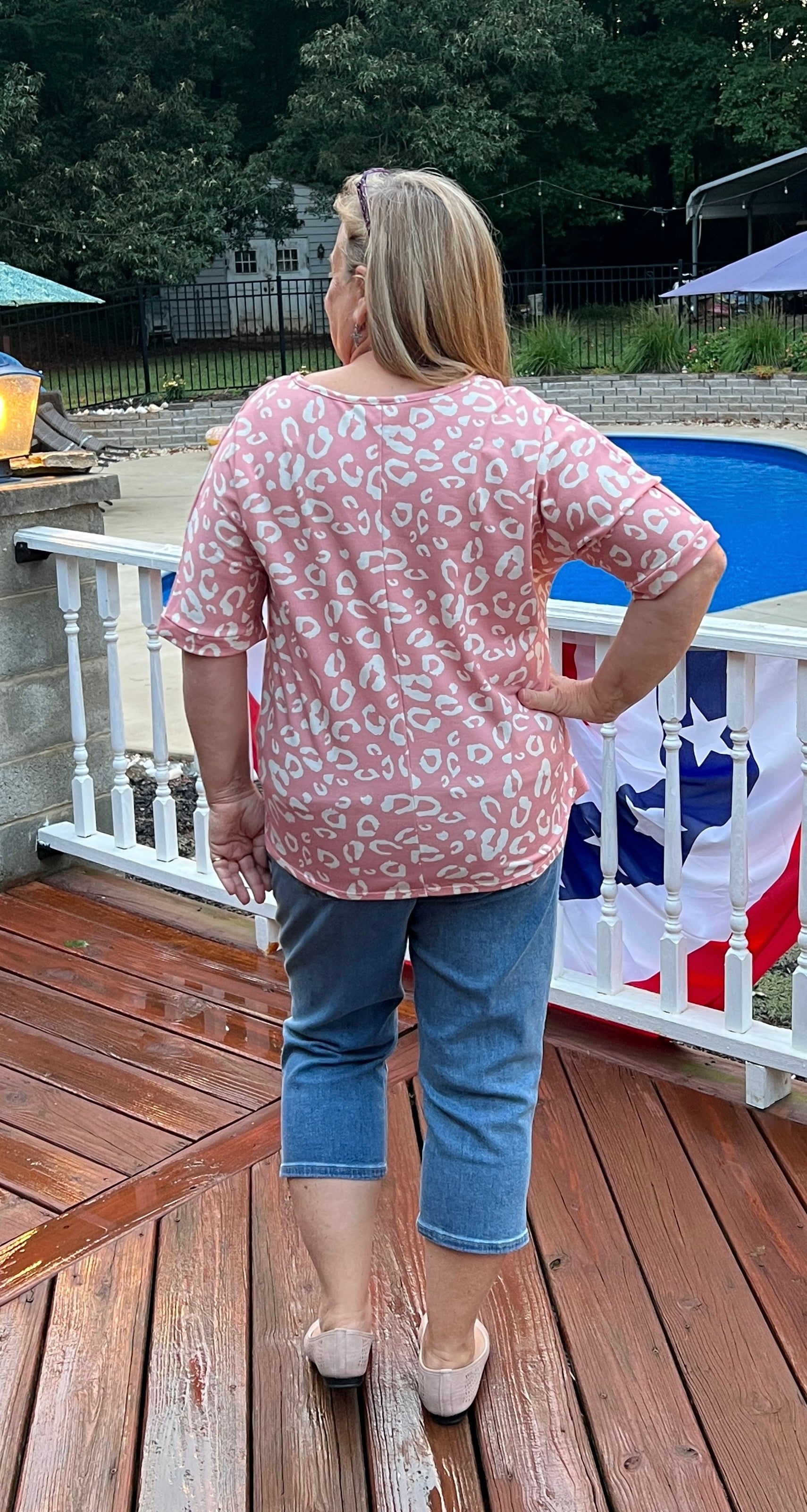 Salmon Blush Leopard Print Short Sleeve V-Neck Top