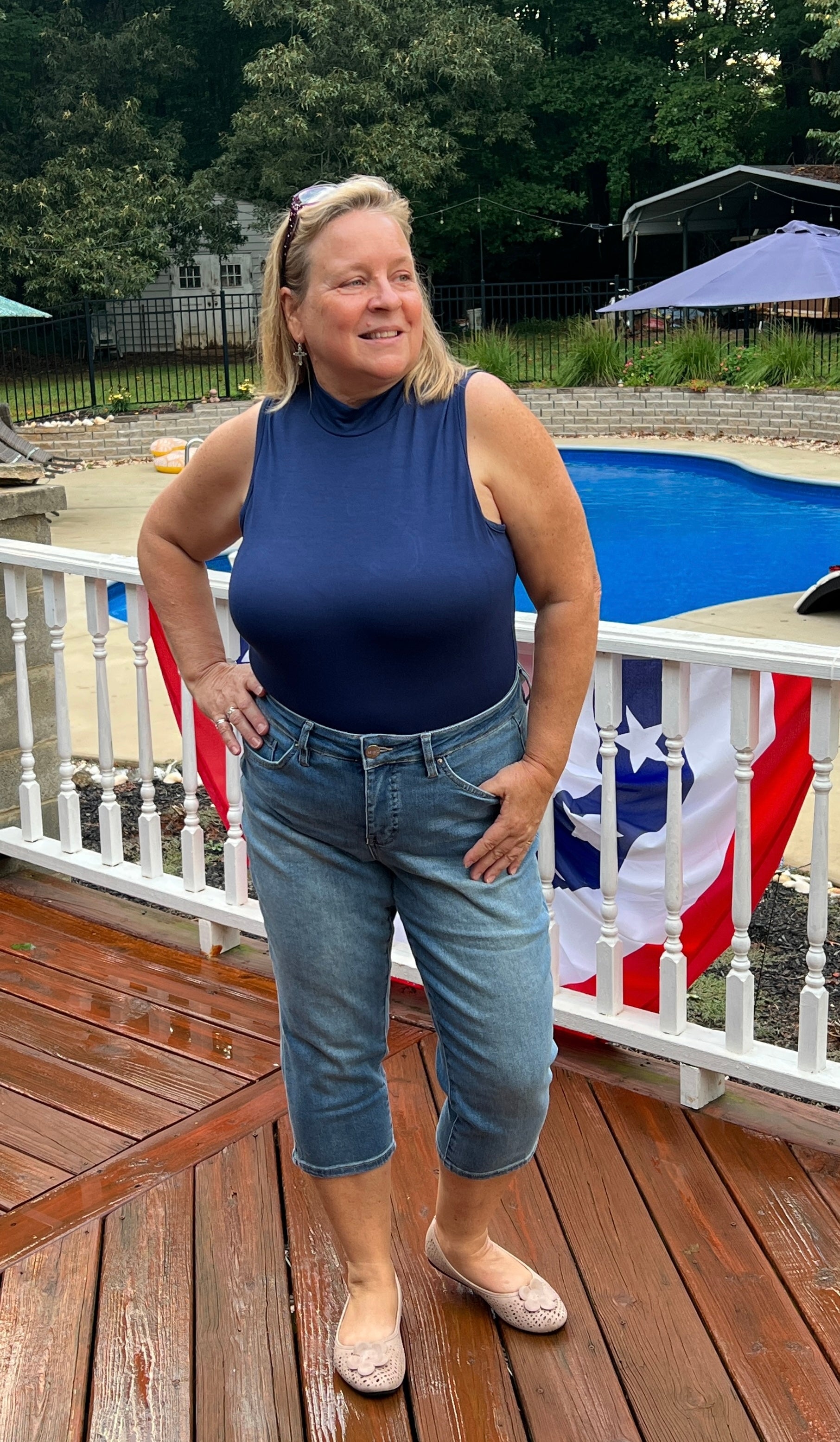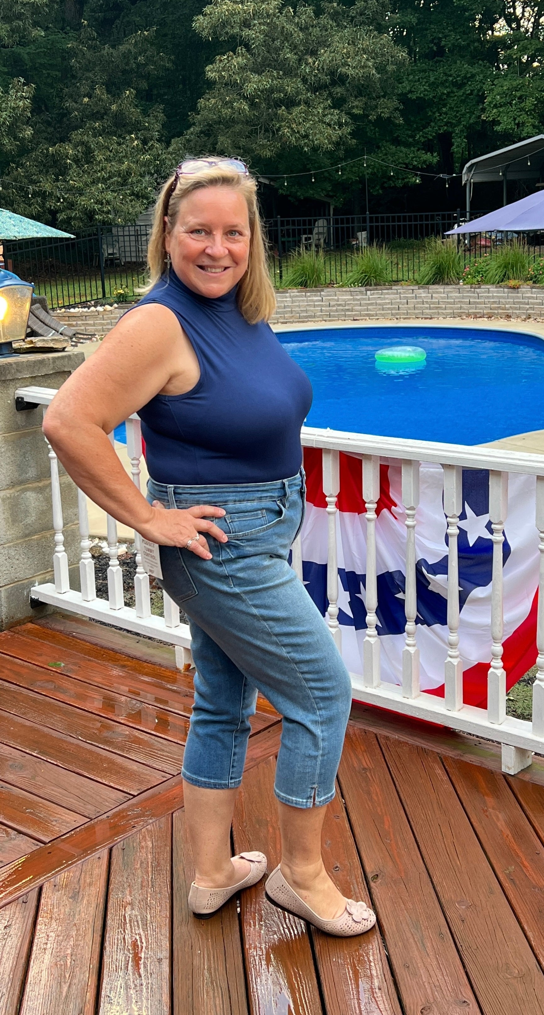 Evening Navy Mock Neck Sleeveless Top
